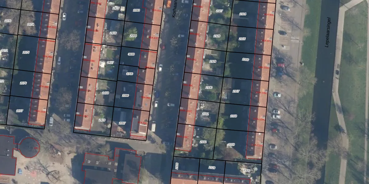 Het perceel waarop Korhaanstraat 98-C staat heeft een oppervlakte van 302 m². Dit is een groot perceel. De perceeloppervlakte wordt geregistreerd door het Kadaster. Gedetailleerde informatie over de maten van dit perceel kunt u vinden in het rapport Kadastrale kaart met maatvoering van Korhaanstraat 98-C.