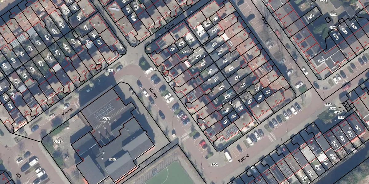 Het perceel waarop Korne 105 staat heeft een oppervlakte van 148 m². Dit is een middelgroot perceel. De perceeloppervlakte wordt geregistreerd door het Kadaster. Gedetailleerde informatie over de maten van dit perceel kunt u vinden in het rapport Kadastrale kaart met maatvoering van Korne 105.