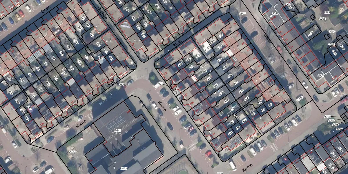 Gebruik de zoekbalk of klik op een perceel voor informatie over de adressen binnen dit perceel.
