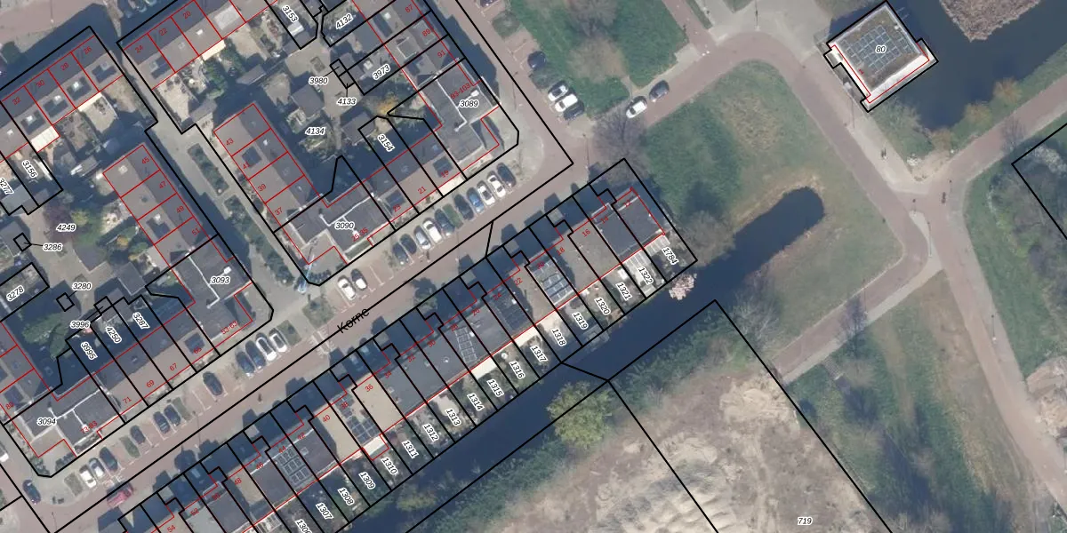 Het perceel waarop Korne 20 staat heeft een oppervlakte van 121 m². Dit is een middelgroot perceel. De perceeloppervlakte wordt geregistreerd door het Kadaster. Gedetailleerde informatie over de maten van dit perceel kunt u vinden in het rapport Kadastrale kaart met maatvoering van Korne 20.