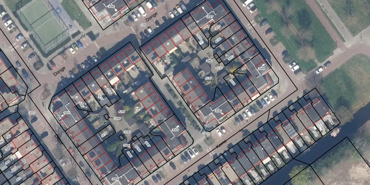 Het perceel waarop Korne 41 staat heeft een oppervlakte van 1624 m². Dit is een zeer groot perceel. De perceeloppervlakte wordt geregistreerd door het Kadaster. Gedetailleerde informatie over de maten van dit perceel kunt u vinden in het rapport Kadastrale kaart met maatvoering van Korne 41.