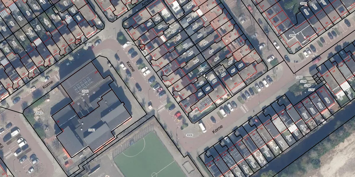Het perceel waarop Korne 99 staat heeft een oppervlakte van 145 m². Dit is een middelgroot perceel. De perceeloppervlakte wordt geregistreerd door het Kadaster. Gedetailleerde informatie over de maten van dit perceel kunt u vinden in het rapport Kadastrale kaart met maatvoering van Korne 99.