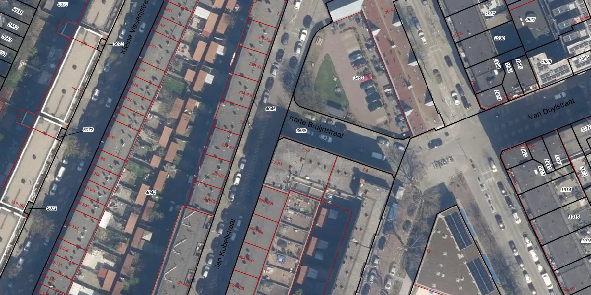 Korte Bruijnstraat 12 is gelegen op kadastraal perceel DHV00H4043. Deze kadastrale aanduiding is uniek en wordt gebruikt door het Kadaster om eigendomsrechten en andere zakelijke rechten vast te leggen. Het perceel maakt onderdeel uit van de kadastrale gemeente Delfshaven.