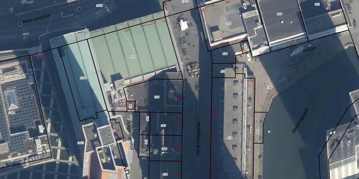 Het perceel waarop Korte Hoogstraat 7-A staat heeft een oppervlakte van 525 m². Dit is een groot perceel. De perceeloppervlakte wordt geregistreerd door het Kadaster. Gedetailleerde informatie over de maten van dit perceel kunt u vinden in het rapport Kadastrale kaart met maatvoering van Korte Hoogstraat 7-A.