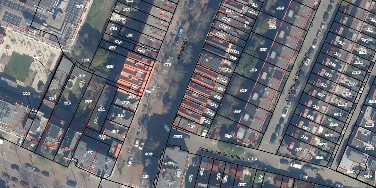 Kortekade 19-B-01 is gelegen op kadastraal perceel KLG00D8766. Deze kadastrale aanduiding is uniek en wordt gebruikt door het Kadaster om eigendomsrechten en andere zakelijke rechten vast te leggen. Het perceel maakt onderdeel uit van de kadastrale gemeente Kralingen.