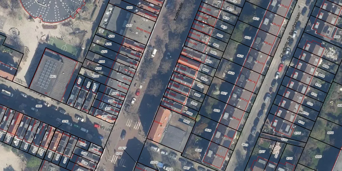 Kortekade 75-B-02 is gelegen op kadastraal perceel KLG00D9094. Deze kadastrale aanduiding is uniek en wordt gebruikt door het Kadaster om eigendomsrechten en andere zakelijke rechten vast te leggen. Het perceel maakt onderdeel uit van de kadastrale gemeente Kralingen.