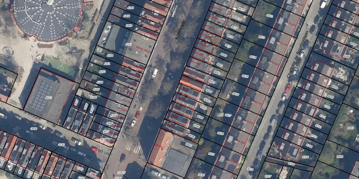Kortekade 79-B-01 is gelegen op kadastraal perceel KLG00D9092. Deze kadastrale aanduiding is uniek en wordt gebruikt door het Kadaster om eigendomsrechten en andere zakelijke rechten vast te leggen. Het perceel maakt onderdeel uit van de kadastrale gemeente Kralingen.