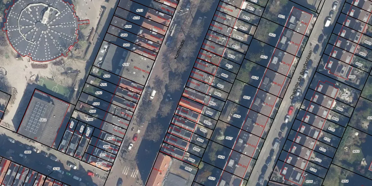 Het perceel waarop Kortekade 83 staat heeft een oppervlakte van 126 m². Dit is een middelgroot perceel. De perceeloppervlakte wordt geregistreerd door het Kadaster. Gedetailleerde informatie over de maten van dit perceel kunt u vinden in het rapport Kadastrale kaart met maatvoering van Kortekade 83.