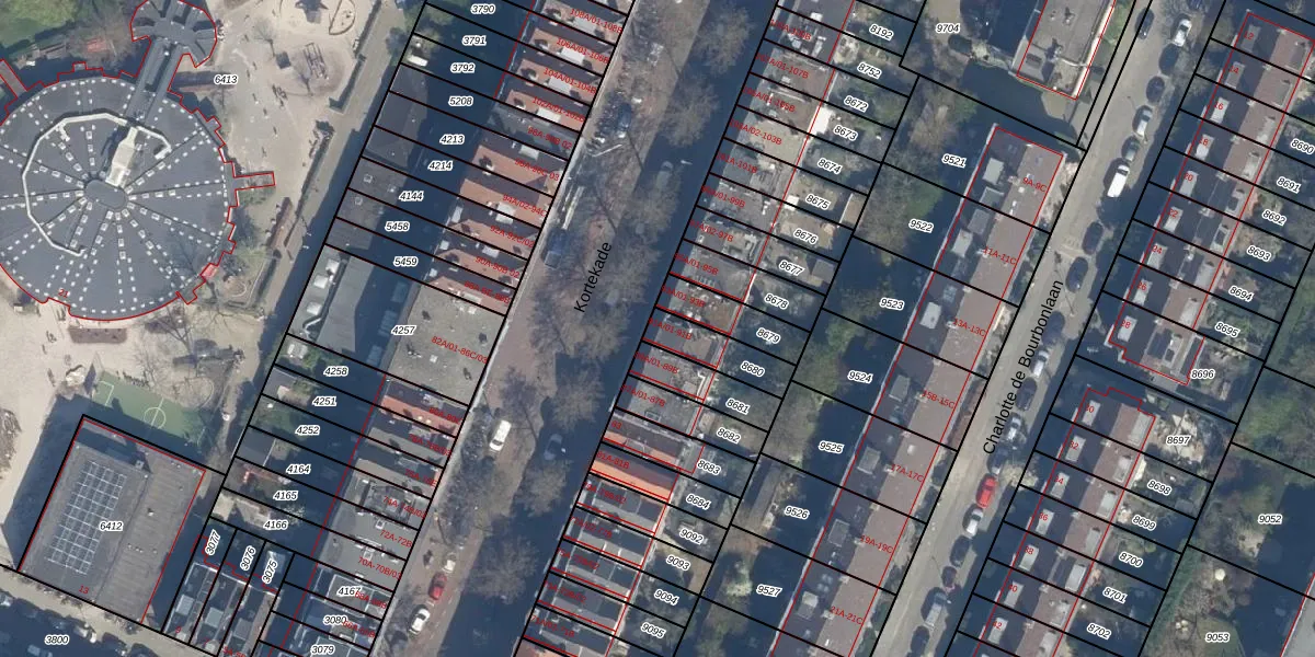 Kortekade 91-A-01 is gelegen op kadastraal perceel KLG00D8680. Deze kadastrale aanduiding is uniek en wordt gebruikt door het Kadaster om eigendomsrechten en andere zakelijke rechten vast te leggen. Het perceel maakt onderdeel uit van de kadastrale gemeente Kralingen.