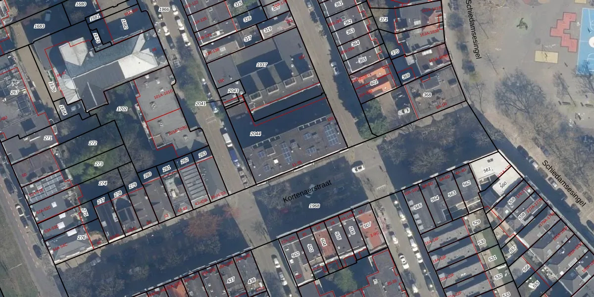 Kortenaerstraat 17 is gelegen op kadastraal perceel RTD04AG2044. Deze kadastrale aanduiding is uniek en wordt gebruikt door het Kadaster om eigendomsrechten en andere zakelijke rechten vast te leggen. Het perceel maakt onderdeel uit van de kadastrale gemeente Rotterdam.