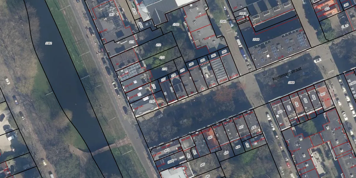 Het perceel waarop Kortenaerstraat 59 staat heeft een oppervlakte van 96 m². Dit is een klein perceel. De perceeloppervlakte wordt geregistreerd door het Kadaster. Gedetailleerde informatie over de maten van dit perceel kunt u vinden in het rapport Kadastrale kaart met maatvoering van Kortenaerstraat 59.