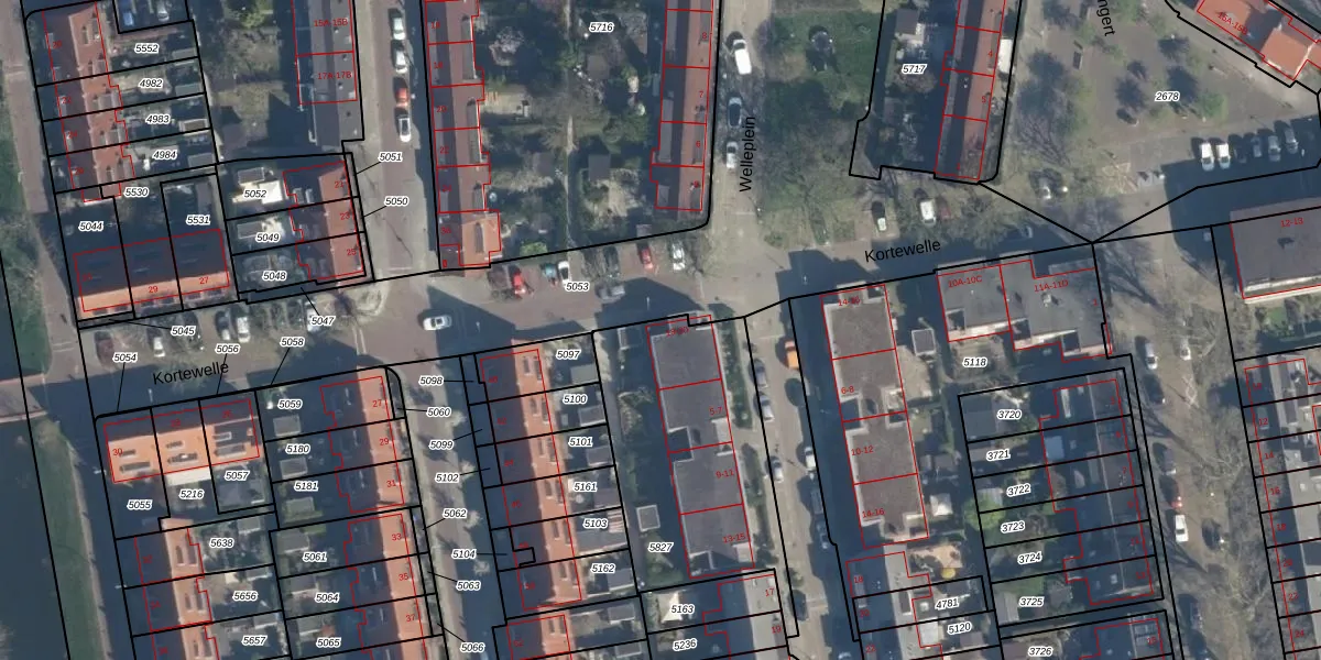 Kortewelle 20 is gelegen op kadastraal perceel RTD05V5827. Deze kadastrale aanduiding is uniek en wordt gebruikt door het Kadaster om eigendomsrechten en andere zakelijke rechten vast te leggen. Het perceel maakt onderdeel uit van de kadastrale gemeente Rotterdam.