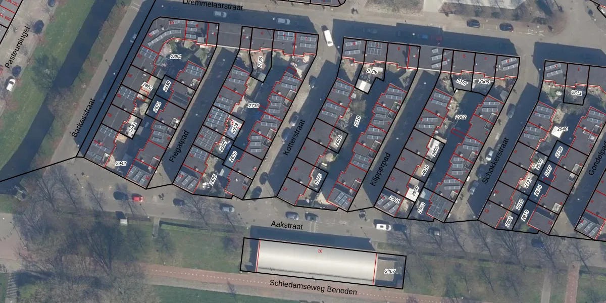 Het adres ligt op het perceel RTD10-AA-2710, dat zich in de kadastrale gemeente Rotterdam bevindt. Het perceel is 1109 m² groot. Dat is kleiner dan de gemiddelde perceeloppervlakte in Rotterdam, dat op 1602,8 m² ligt. Het kleinste perceel in de kadastrale gemeente is 0 m² groot. De grootste perceeloppervlakte is 30,3 ha. Op het perceel liggen in totaal 13 adressen. De laatste wijziging in het de Basisregistratie Kadaster (BRK) was op 12-06-2008.