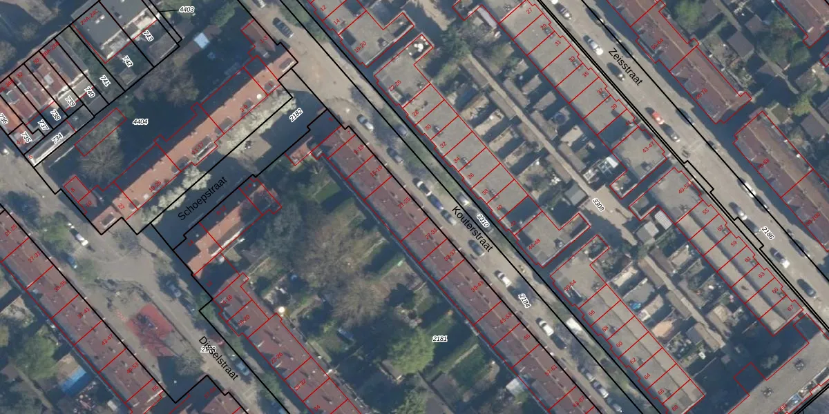 Kouterstraat 21 is gelegen op kadastraal perceel CLS00F2181. Deze kadastrale aanduiding is uniek en wordt gebruikt door het Kadaster om eigendomsrechten en andere zakelijke rechten vast te leggen. Het perceel maakt onderdeel uit van de kadastrale gemeente Charlois.