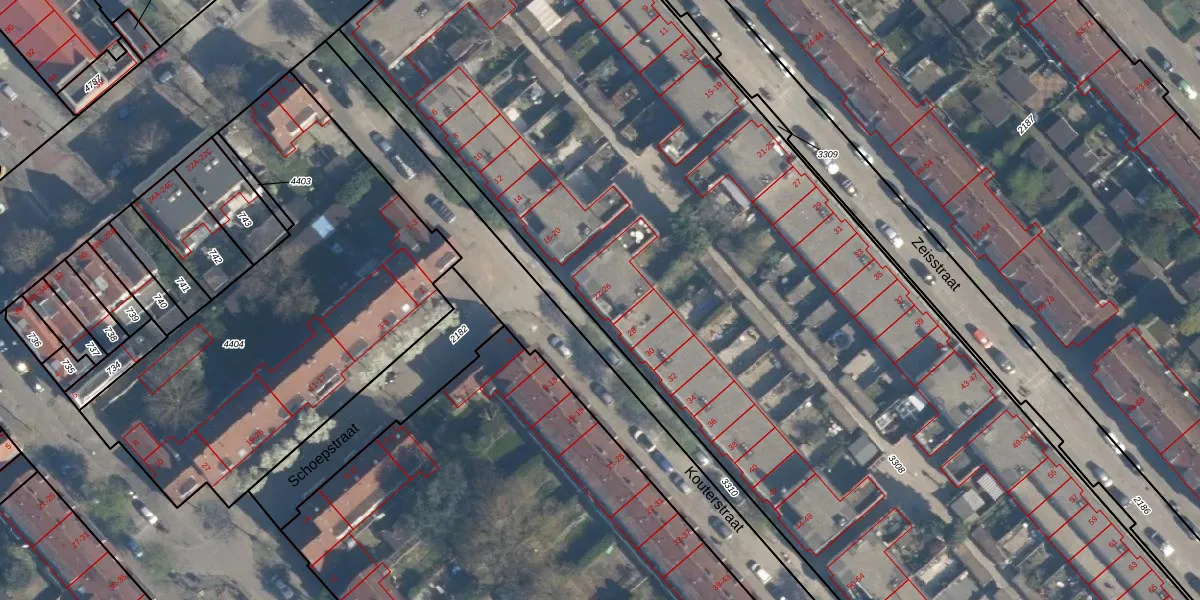 Kouterstraat 26 is gelegen op kadastraal perceel CLS00F3308. Deze kadastrale aanduiding is uniek en wordt gebruikt door het Kadaster om eigendomsrechten en andere zakelijke rechten vast te leggen. Het perceel maakt onderdeel uit van de kadastrale gemeente Charlois.