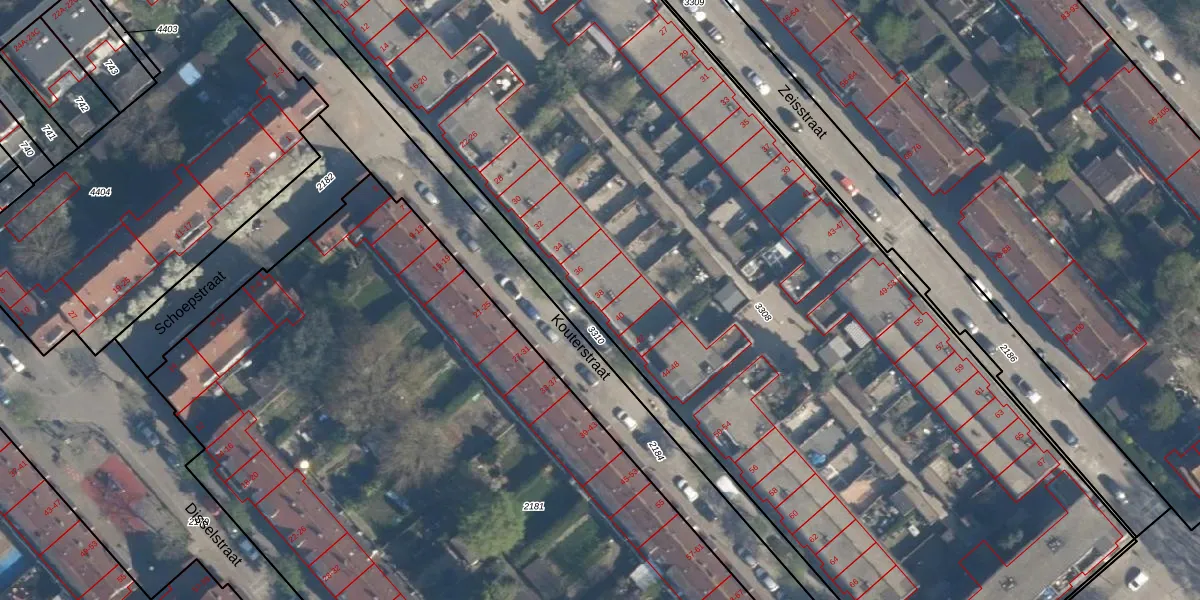 Kouterstraat 38 is gelegen op kadastraal perceel CLS00F3308. Deze kadastrale aanduiding is uniek en wordt gebruikt door het Kadaster om eigendomsrechten en andere zakelijke rechten vast te leggen. Het perceel maakt onderdeel uit van de kadastrale gemeente Charlois.