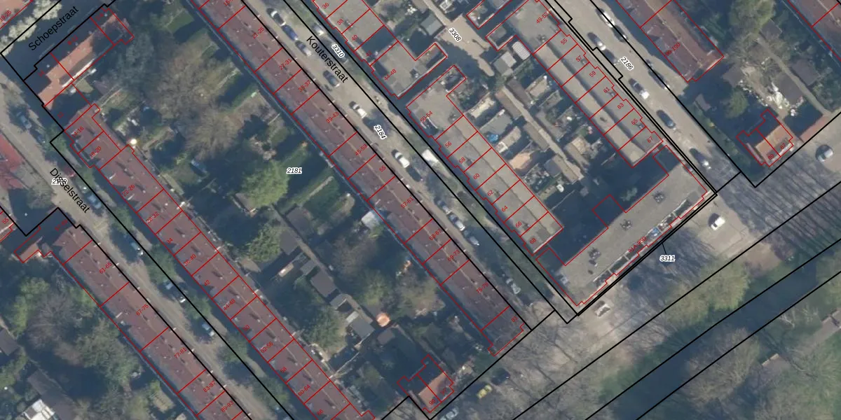 Het perceel waarop Kouterstraat 59 staat heeft een oppervlakte van 6819 m². Dit is een zeer groot perceel. De perceeloppervlakte wordt geregistreerd door het Kadaster. Gedetailleerde informatie over de maten van dit perceel kunt u vinden in het rapport Kadastrale kaart met maatvoering van Kouterstraat 59.