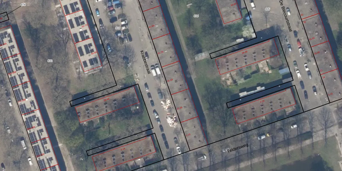 Krabbestraat 55 is gelegen op kadastraal perceel SBK01D834. Deze kadastrale aanduiding is uniek en wordt gebruikt door het Kadaster om eigendomsrechten en andere zakelijke rechten vast te leggen. Het perceel maakt onderdeel uit van de kadastrale gemeente Schiebroek.
