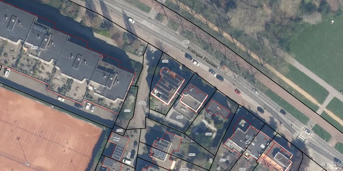 Kralingse Plaslaan 45 is gelegen op kadastraal perceel KLG00G5581. Deze kadastrale aanduiding is uniek en wordt gebruikt door het Kadaster om eigendomsrechten en andere zakelijke rechten vast te leggen. Het perceel maakt onderdeel uit van de kadastrale gemeente Kralingen.