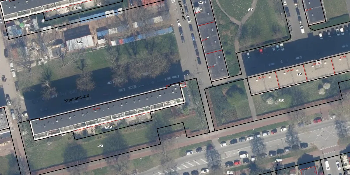 Kramerstraat 102 is gelegen op kadastraal perceel KLG00K1165. Deze kadastrale aanduiding is uniek en wordt gebruikt door het Kadaster om eigendomsrechten en andere zakelijke rechten vast te leggen. Het perceel maakt onderdeel uit van de kadastrale gemeente Kralingen.