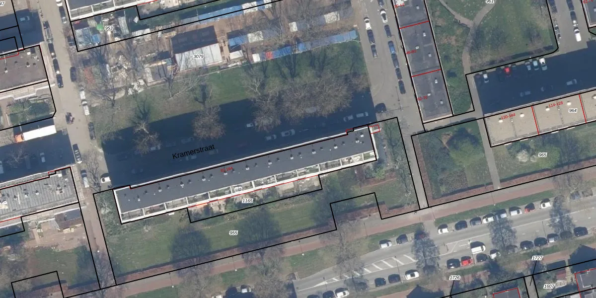 Kramerstraat 154 is gelegen op kadastraal perceel KLG00K1165. Deze kadastrale aanduiding is uniek en wordt gebruikt door het Kadaster om eigendomsrechten en andere zakelijke rechten vast te leggen. Het perceel maakt onderdeel uit van de kadastrale gemeente Kralingen.