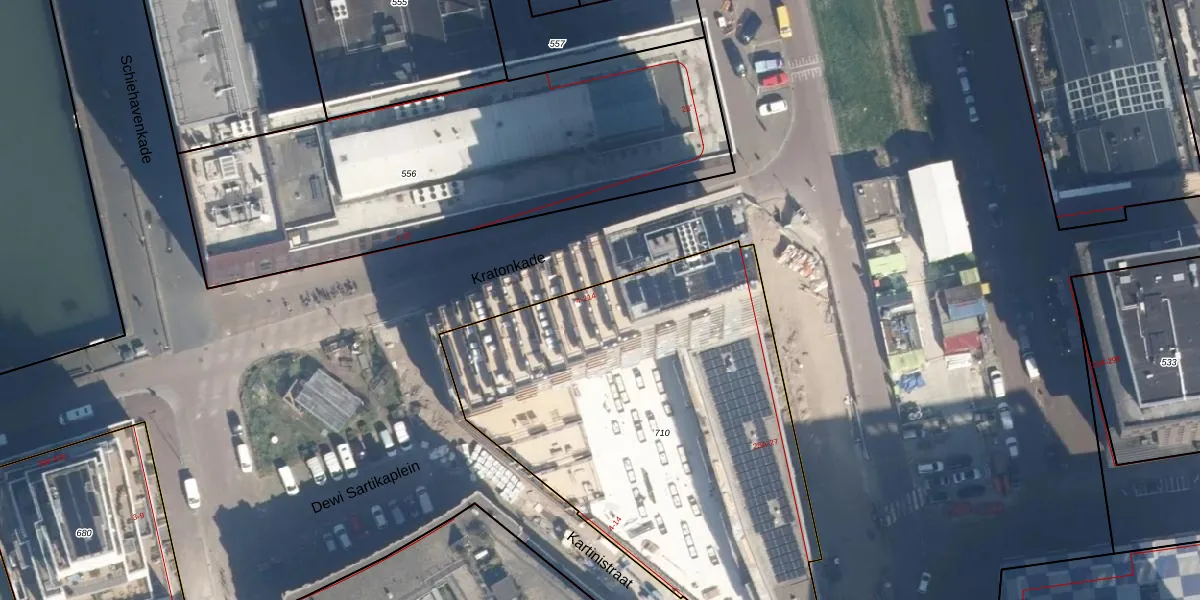 Het perceel waarop Kratonkade 206 staat heeft een oppervlakte van 2528 m². Dit is een zeer groot perceel. De perceeloppervlakte wordt geregistreerd door het Kadaster. Gedetailleerde informatie over de maten van dit perceel kunt u vinden in het rapport Kadastrale kaart met maatvoering van Kratonkade 206.