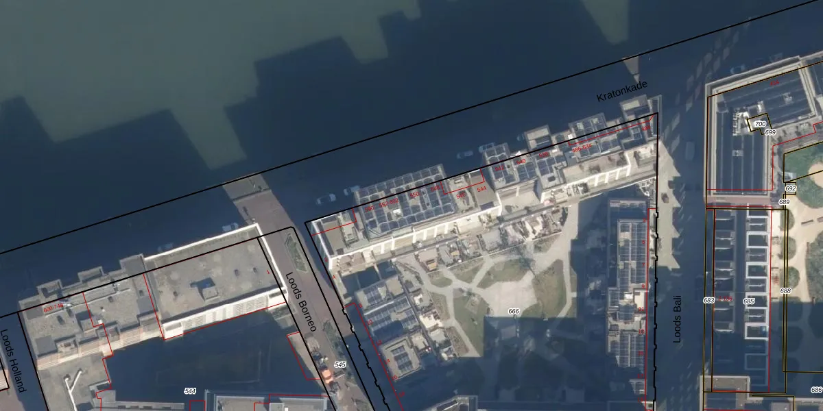 Kratonkade 550 is gelegen op kadastraal perceel DHV00G666. Deze kadastrale aanduiding is uniek en wordt gebruikt door het Kadaster om eigendomsrechten en andere zakelijke rechten vast te leggen. Het perceel maakt onderdeel uit van de kadastrale gemeente Delfshaven.