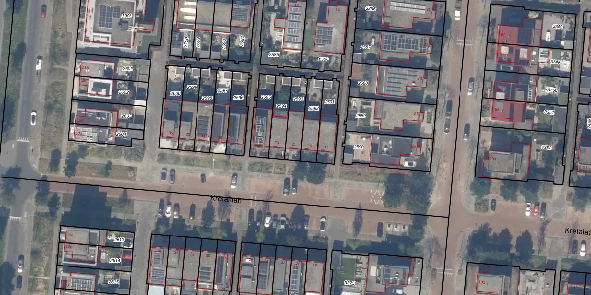 Kretalaan 21 is gelegen op kadastraal perceel RTD14BC2593. Deze kadastrale aanduiding is uniek en wordt gebruikt door het Kadaster om eigendomsrechten en andere zakelijke rechten vast te leggen. Het perceel maakt onderdeel uit van de kadastrale gemeente Rotterdam.