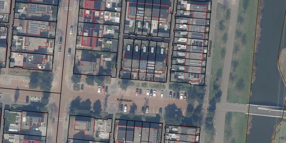 Gebruik de zoekbalk of klik op een perceel voor informatie over de adressen binnen dit perceel.
