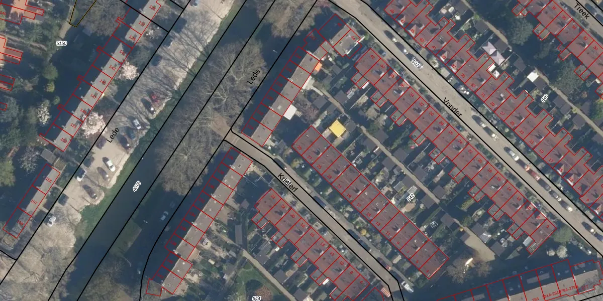Het perceel waarop Krielerf 29 staat heeft een oppervlakte van 6631 m². Dit is een zeer groot perceel. De perceeloppervlakte wordt geregistreerd door het Kadaster. Gedetailleerde informatie over de maten van dit perceel kunt u vinden in het rapport Kadastrale kaart met maatvoering van Krielerf 29.
