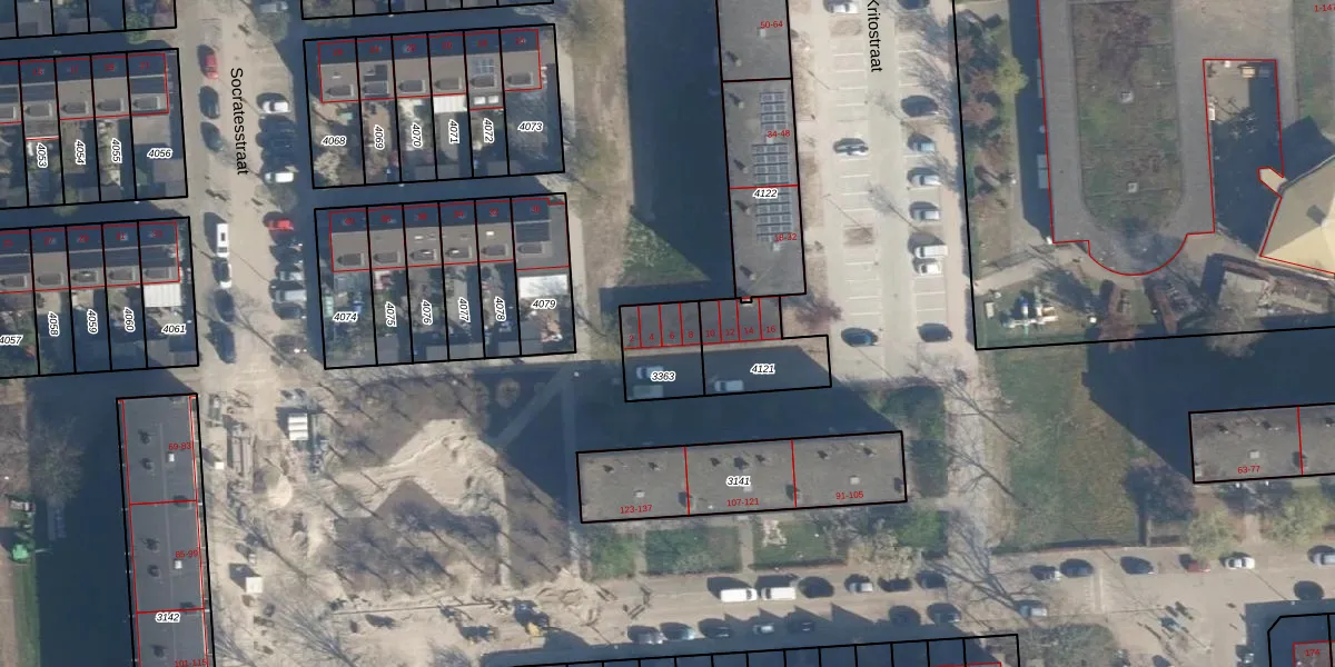 Kritostraat 6 is gelegen op kadastraal perceel ISM01C3363. Deze kadastrale aanduiding is uniek en wordt gebruikt door het Kadaster om eigendomsrechten en andere zakelijke rechten vast te leggen. Het perceel maakt onderdeel uit van de kadastrale gemeente IJsselmonde.