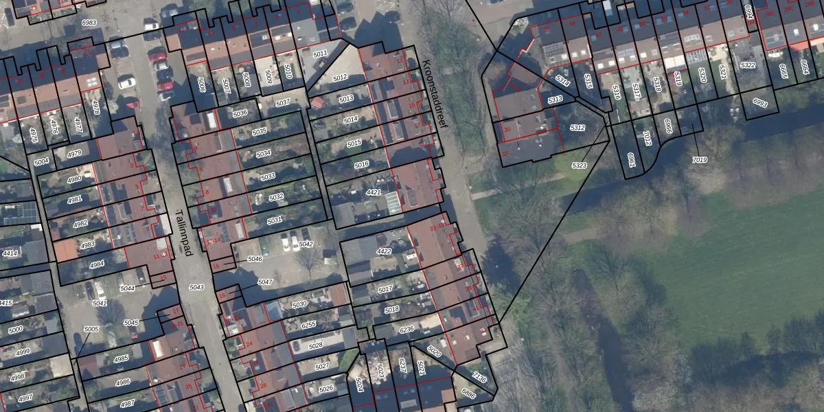 Het perceel waarop Kroonstaddreef 25 staat heeft een oppervlakte van 307 m². Dit is een groot perceel. De perceeloppervlakte wordt geregistreerd door het Kadaster. Gedetailleerde informatie over de maten van dit perceel kunt u vinden in het rapport Kadastrale kaart met maatvoering van Kroonstaddreef 25.