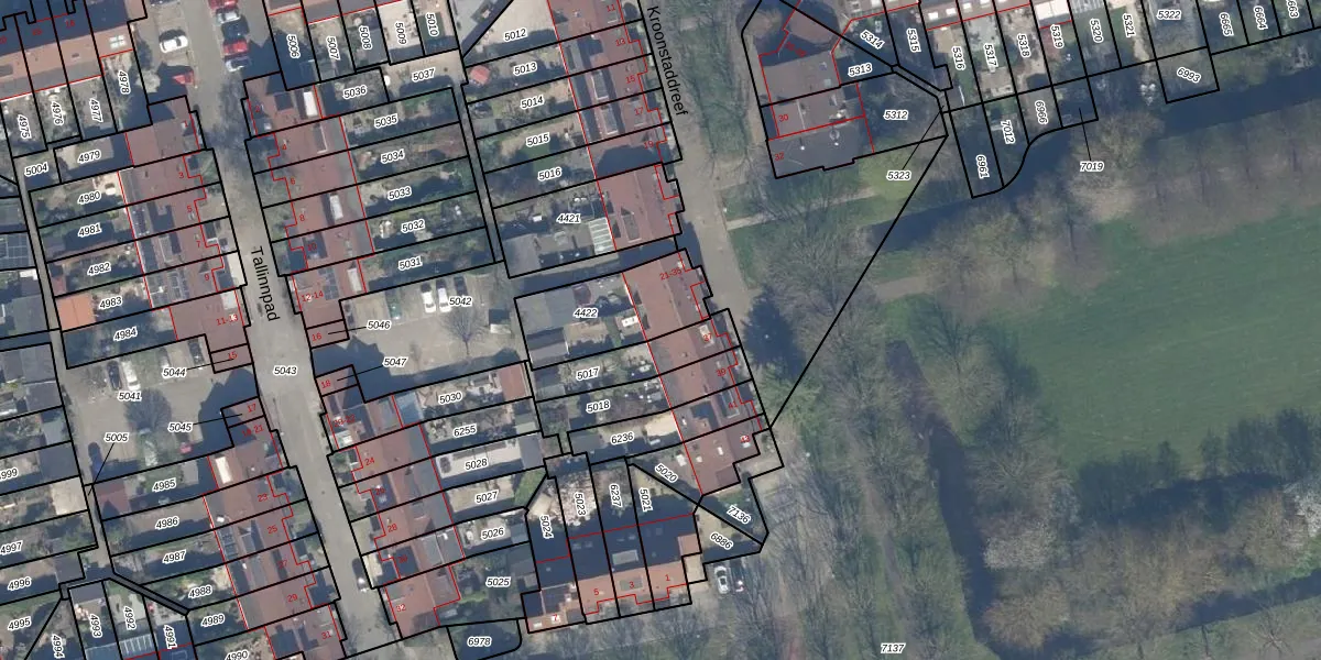Het perceel waarop Kroonstaddreef 33 staat heeft een oppervlakte van 315 m². Dit is een groot perceel. De perceeloppervlakte wordt geregistreerd door het Kadaster. Gedetailleerde informatie over de maten van dit perceel kunt u vinden in het rapport Kadastrale kaart met maatvoering van Kroonstaddreef 33.