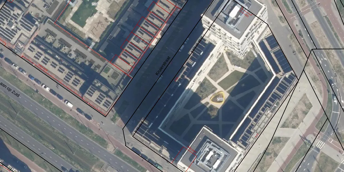 Het perceel waarop het adres ligt is RTD05-Q-7161. De afkorting 'RTD05' staat voor kadastrale gemeente Rotterdam. De oppervlakte van het perceel is 5635 m². Dat is groter dan gemiddeld in Rotterdam, waar de gemiddelde perceeloppervlakte op 1401,79 m² ligt. De grootste perceeloppervlakte in de kadastrale gemeente is 36,8 ha. De kleinste oppervlakte bedraagt 0 m². Op het perceel liggen in totaal 309 adressen. De laatste wijziging in het de Basisregistratie Kadaster (BRK) was op 12-06-2025.