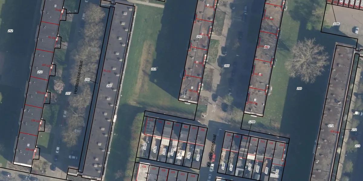 Het perceel waarop Kruiningenstraat 195 staat heeft een oppervlakte van 817 m². Dit is een groot perceel. De perceeloppervlakte wordt geregistreerd door het Kadaster. Gedetailleerde informatie over de maten van dit perceel kunt u vinden in het rapport Kadastrale kaart met maatvoering van Kruiningenstraat 195.