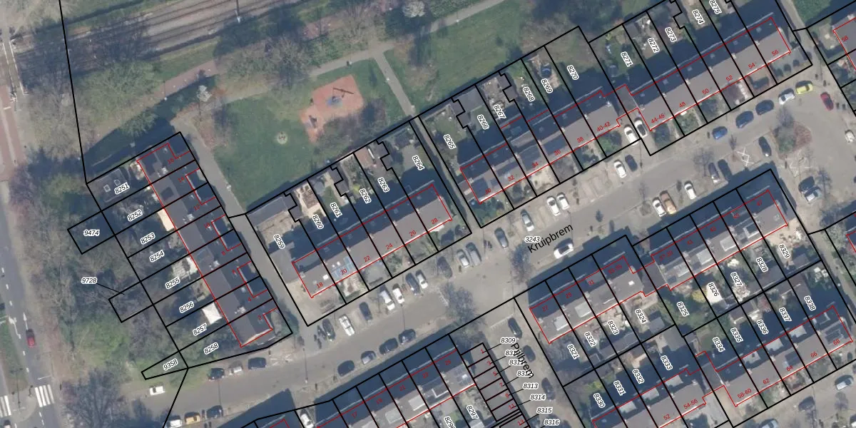 Het perceel waarop het adres ligt is HLG03-B-8264. De afkorting 'HLG03' staat voor kadastrale gemeente Hillegersberg. Het perceel is 266 m² groot. Dat is kleiner dan de gemiddelde perceeloppervlakte in Hillegersberg, dat op 875,49 m² ligt. De grootste perceeloppervlakte in de kadastrale gemeente is 34,1 ha. De kleinste oppervlakte bedraagt 0 m². Er zijn geen andere adressen aanwezig op het perceel. De huidige grenzen van het perceel zijn digitaal in de Basisregistratie Kadaster (BRK) geregistreerd op 04-06-2010.