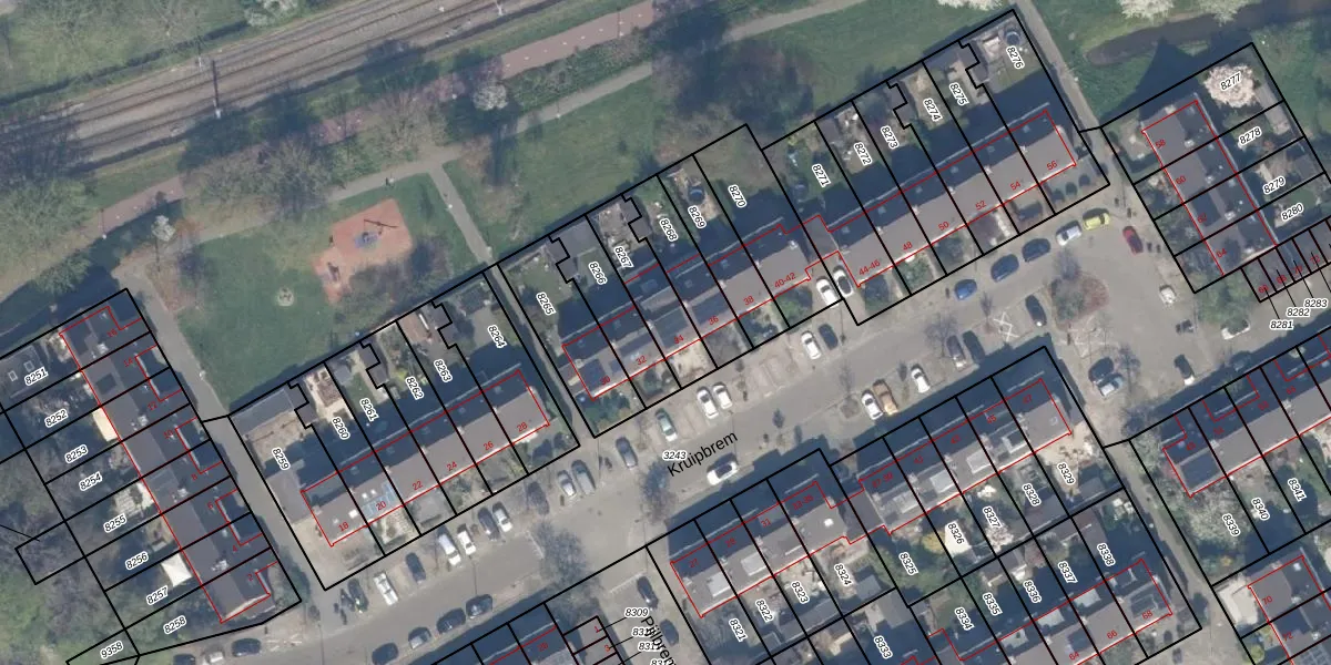 Het perceel waarop Kruipbrem 34 staat heeft een oppervlakte van 187 m². Dit is een middelgroot perceel. De perceeloppervlakte wordt geregistreerd door het Kadaster. Gedetailleerde informatie over de maten van dit perceel kunt u vinden in het rapport Kadastrale kaart met maatvoering van Kruipbrem 34.