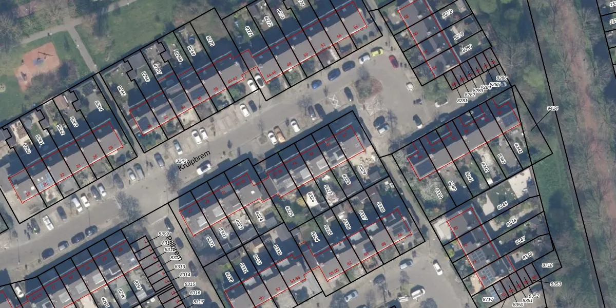 Kruipbrem 43 is gelegen op kadastraal perceel HLG03B8327. Deze kadastrale aanduiding is uniek en wordt gebruikt door het Kadaster om eigendomsrechten en andere zakelijke rechten vast te leggen. Het perceel maakt onderdeel uit van de kadastrale gemeente Hillegersberg.