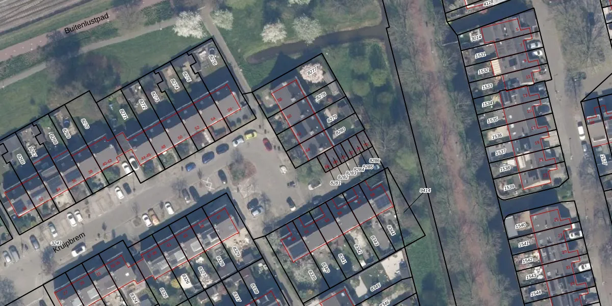 Het perceel waarop Kruipbrem 64 staat heeft een oppervlakte van 163 m². Dit is een middelgroot perceel. De perceeloppervlakte wordt geregistreerd door het Kadaster. Gedetailleerde informatie over de maten van dit perceel kunt u vinden in het rapport Kadastrale kaart met maatvoering van Kruipbrem 64.