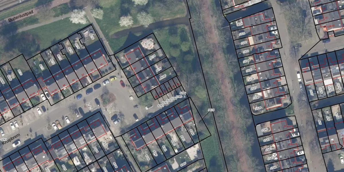 Het perceel waarop Kruipbrem 74 staat heeft een oppervlakte van 18 m². Dit is een klein perceel. De perceeloppervlakte wordt geregistreerd door het Kadaster. Gedetailleerde informatie over de maten van dit perceel kunt u vinden in het rapport Kadastrale kaart met maatvoering van Kruipbrem 74.