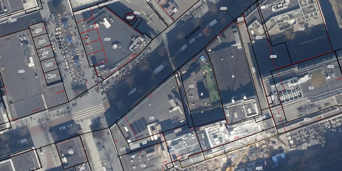 Het perceel waarop Kruiskade 18 staat heeft een oppervlakte van 895 m². Dit is een groot perceel. De perceeloppervlakte wordt geregistreerd door het Kadaster. Gedetailleerde informatie over de maten van dit perceel kunt u vinden in het rapport Kadastrale kaart met maatvoering van Kruiskade 18.