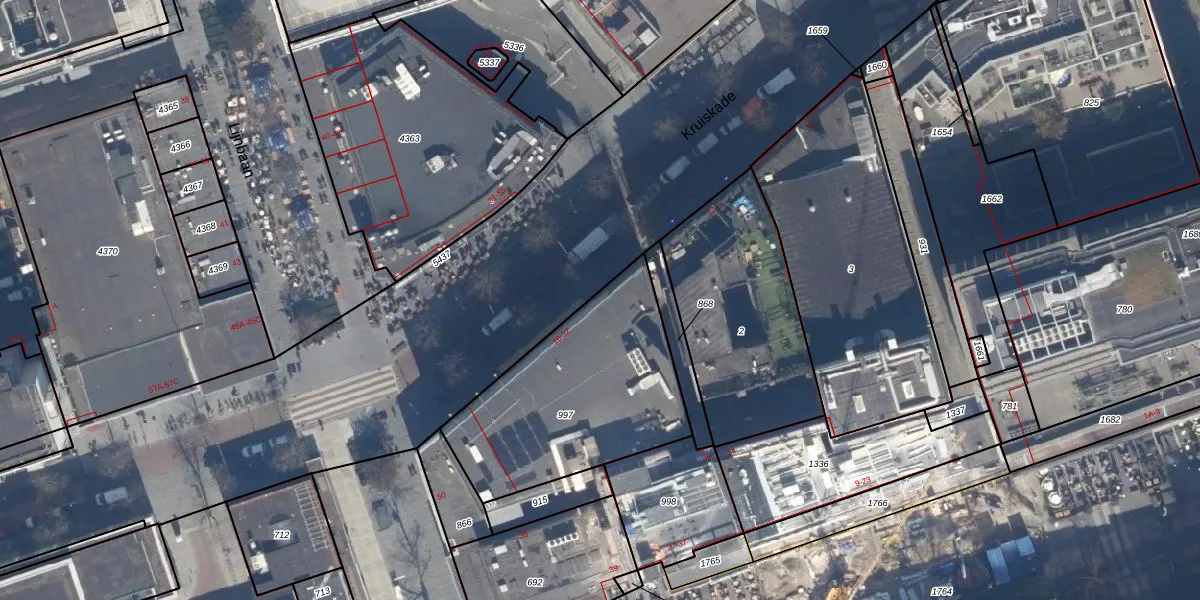 Het perceel waarop Kruiskade 22 staat heeft een oppervlakte van 895 m². Dit is een groot perceel. De perceeloppervlakte wordt geregistreerd door het Kadaster. Gedetailleerde informatie over de maten van dit perceel kunt u vinden in het rapport Kadastrale kaart met maatvoering van Kruiskade 22.