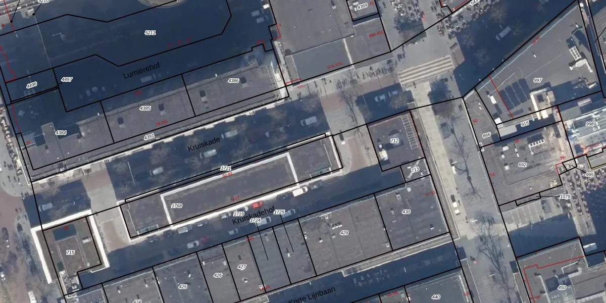 Het perceel waarop Kruiskade 62 staat heeft een oppervlakte van 839 m². Dit is een groot perceel. De perceeloppervlakte wordt geregistreerd door het Kadaster. Gedetailleerde informatie over de maten van dit perceel kunt u vinden in het rapport Kadastrale kaart met maatvoering van Kruiskade 62.