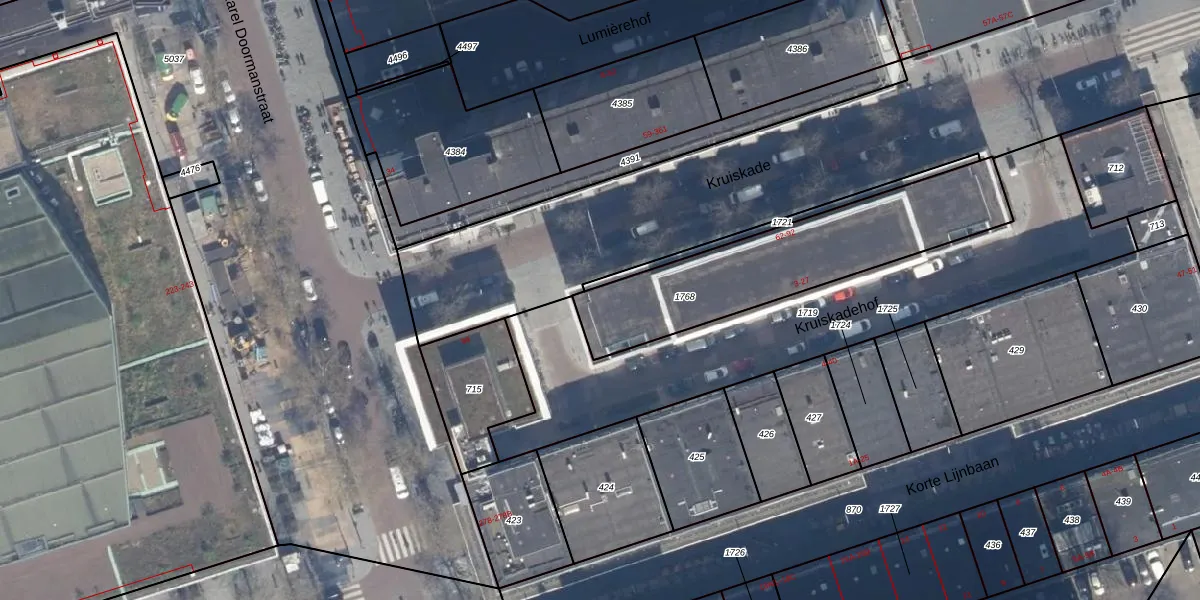 Kruiskadehof 25 is gelegen op kadastraal perceel RTD04AF1768. Deze kadastrale aanduiding is uniek en wordt gebruikt door het Kadaster om eigendomsrechten en andere zakelijke rechten vast te leggen. Het perceel maakt onderdeel uit van de kadastrale gemeente Rotterdam.