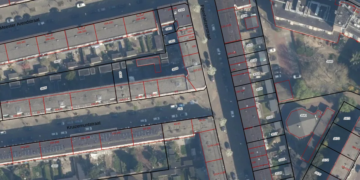 Het perceel waarop het adres ligt is CLS00-H-3608. De afkorting 'CLS00' staat voor kadastrale gemeente Charlois. Het perceel is kleiner dan gemiddeld in Charlois. Het perceel is 1046 m² groot, terwijl het gemiddelde ligt op 1147,69 m². Het kleinste perceel in de kadastrale gemeente is 0 m² groot. De grootste perceeloppervlakte is 1,09 km². Er zijn 18 adressen aanwezig op het perceel. In de Basisregistratie Kadaster (BRK) werden de grenzen van het perceel geregistreerd op 08-11-2004.
