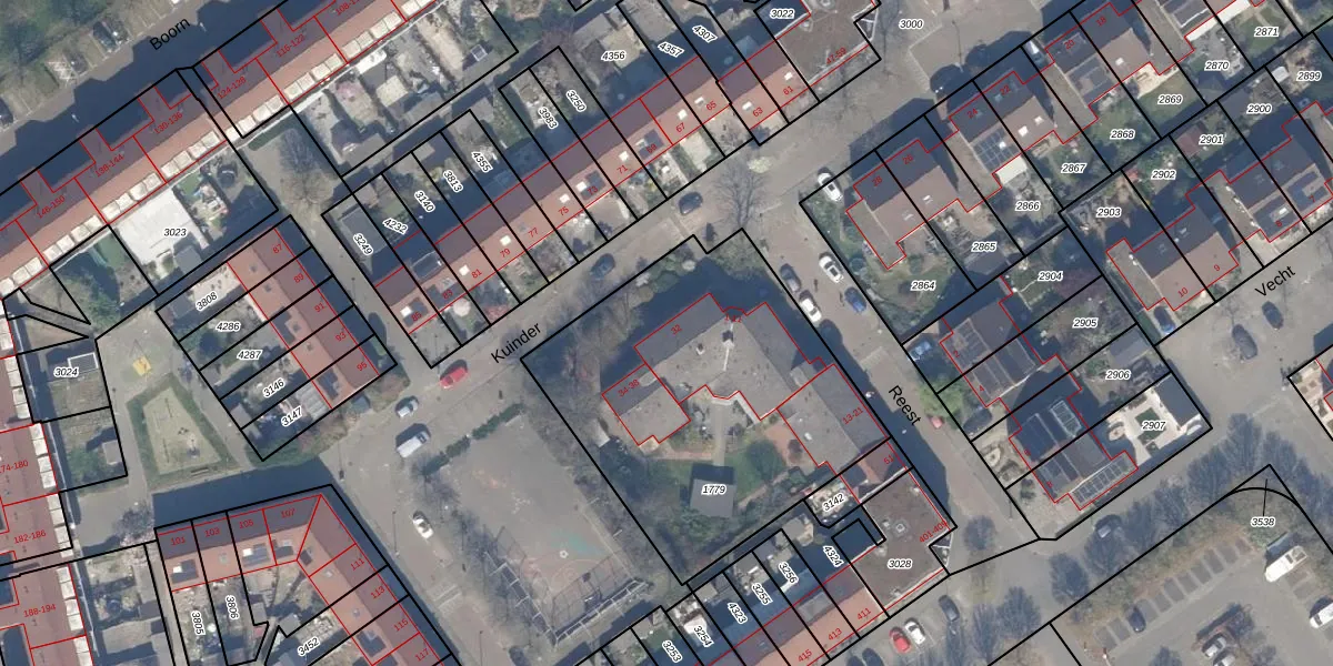 Het perceel waarop Kuinder 32 staat heeft een oppervlakte van 1585 m². Dit is een zeer groot perceel. De perceeloppervlakte wordt geregistreerd door het Kadaster. Gedetailleerde informatie over de maten van dit perceel kunt u vinden in het rapport Kadastrale kaart met maatvoering van Kuinder 32.