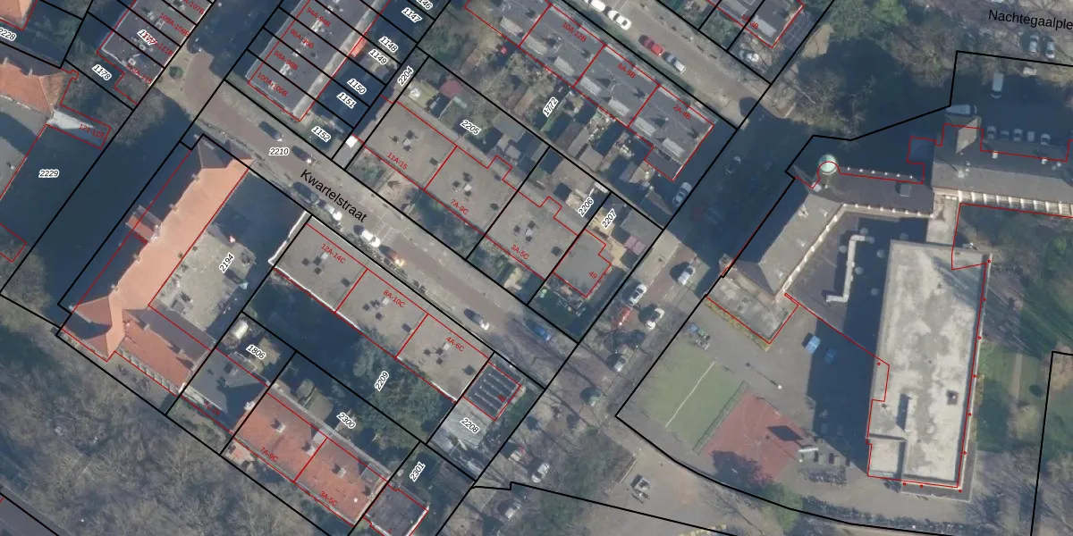 Het perceel waarop Kwartelstraat 3-B staat heeft een oppervlakte van 373 m². Dit is een groot perceel. De perceeloppervlakte wordt geregistreerd door het Kadaster. Gedetailleerde informatie over de maten van dit perceel kunt u vinden in het rapport Kadastrale kaart met maatvoering van Kwartelstraat 3-B.