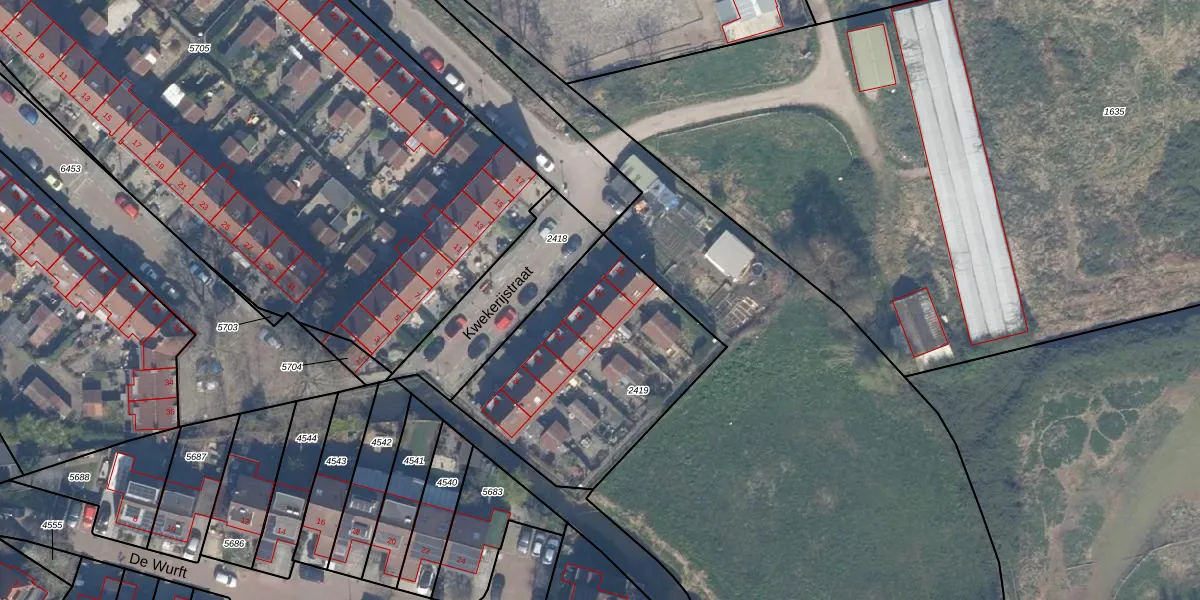 Het perceel waarop Kwekerijstraat 16 staat heeft een oppervlakte van 1021 m². Dit is een zeer groot perceel. De perceeloppervlakte wordt geregistreerd door het Kadaster. Gedetailleerde informatie over de maten van dit perceel kunt u vinden in het rapport Kadastrale kaart met maatvoering van Kwekerijstraat 16.