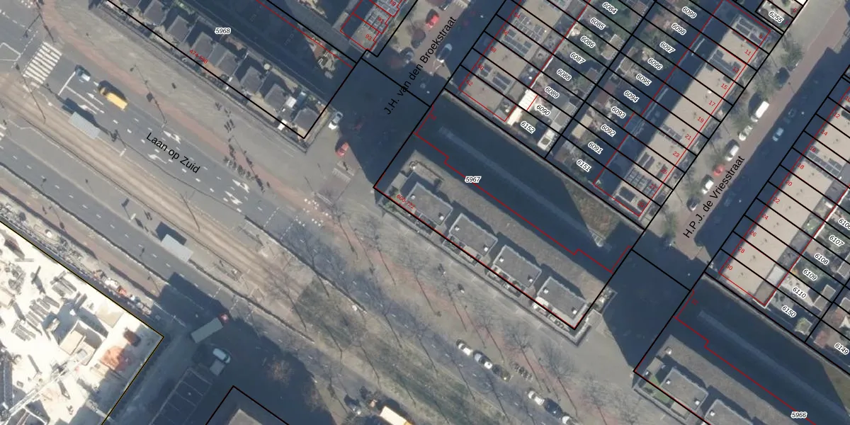 Laan op Zuid 656 is gelegen op kadastraal perceel RTD05Q5967. Deze kadastrale aanduiding is uniek en wordt gebruikt door het Kadaster om eigendomsrechten en andere zakelijke rechten vast te leggen. Het perceel maakt onderdeel uit van de kadastrale gemeente Rotterdam.
