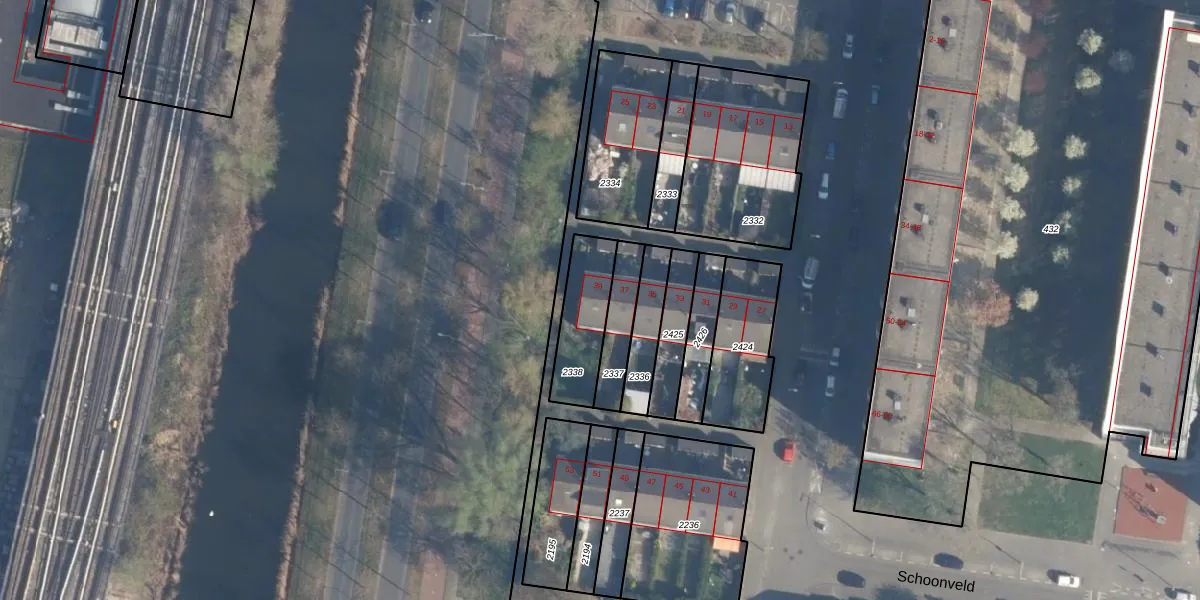 Gebruik de zoekbalk of klik op een perceel voor informatie over de adressen binnen dit perceel.
